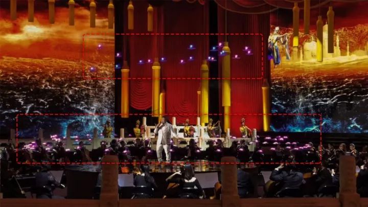 本次《壮丽航程》节目的舞台为360度环形升降舞台,歌手在环形升降舞台演唱,乐队围绕环形舞台伴奏,舞蹈演员位于舞台后部。考虑现场舞台结构和物美设计,零度智控工程师决定使用两套不同的定位系统进行演出。