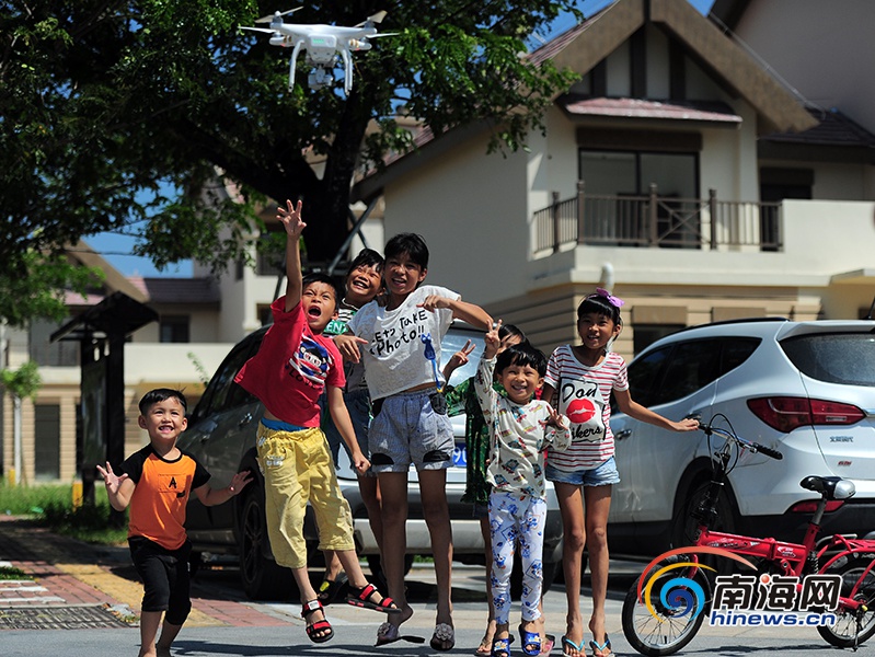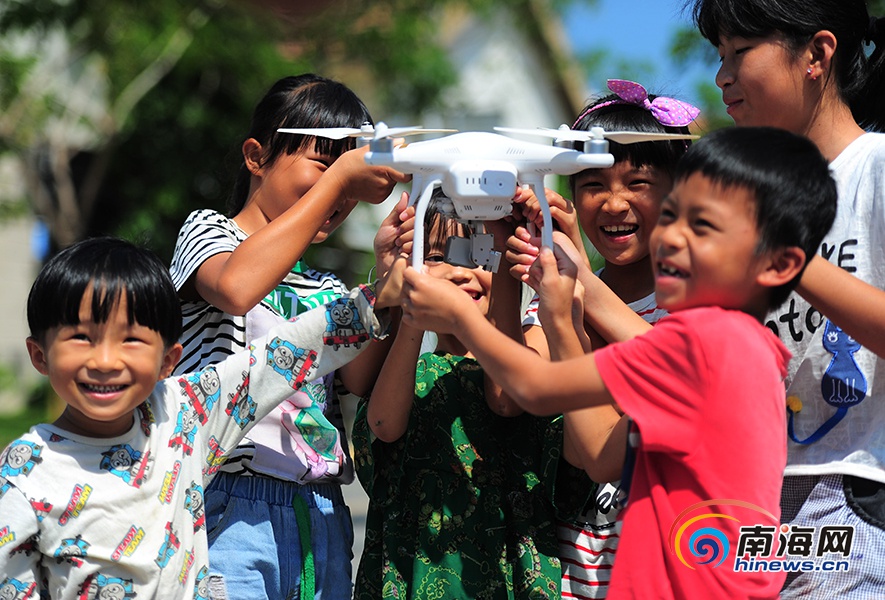 10月21日,无人机航拍引起孩子们的好奇心。南海网记者沙晓峰摄