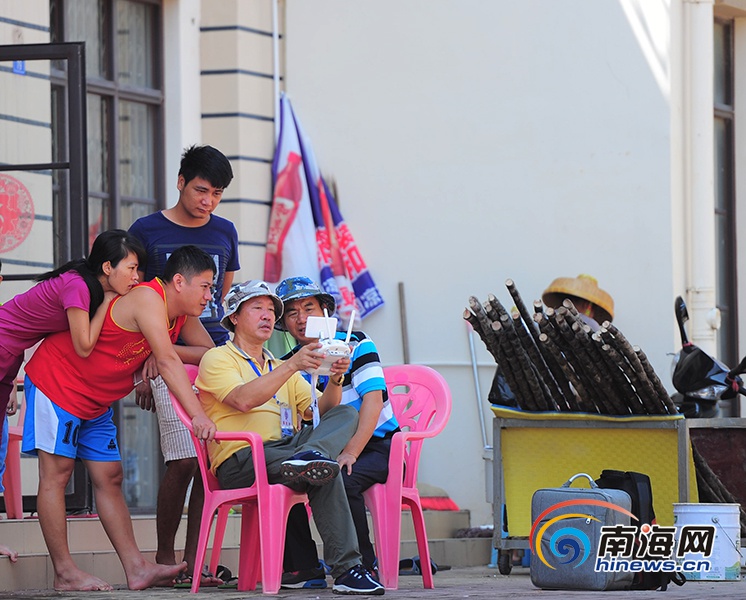 10月21日,三亚市海棠区江林村村民在观看摄影师用无人机航拍。南海网记者沙晓峰摄