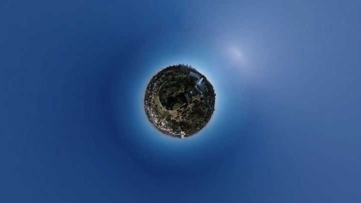 “晓”从不同角度拍摄多张照片后生成球形全景图