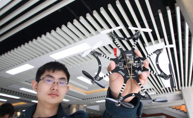 大学生研发无人机,打入国际市场 哈尔滨工程大学的水生工程学院的大学生成立了“无穷创新”科技公司。研发的四旋翼、六旋翼、八旋翼无人机,添加了超过声波、视觉系统定位功能,能实现自主起飞与自主降落,让飞行变得更加智能轻松。目前大学生创业团队通过网络将无人机产品销往全国各地以及日本,赚得了第一桶金。