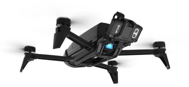 Bebop-Pro Thermo其实是Bebop无人机的更新升级版,它搭载了1400万像素摄像头,同时还装备了Flir One Pro热成像摄像机,可以用户建筑和救援服务。这款无人机可以飞行25分钟,零售包内有三节电池组,一个Skycontroller 2控制器和一个价值1400美元的背包。这款无人机预计将会在今年十一月份推出。