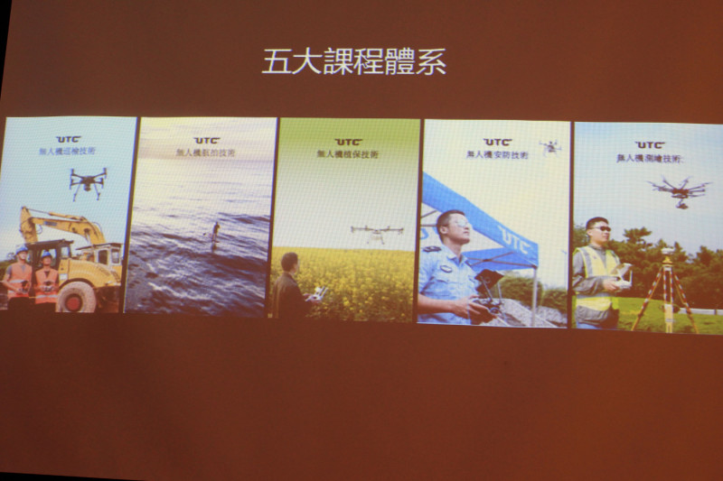 目前中国 UTC 课程有无人机巡检技术、航拍技术、农业植保机技术、安防技术、测绘技术等五大课程体系,据悉台湾同样会引入这五大课程体系,但有所修改,主要是切合台湾法令要求。由于台湾无人机法案尚未通过,所以未来课程关于法令的部分也会因应法令有所修改。目前,UTC 首先在台湾推出空拍和无人机巡检技术两门课程,前者包括飞安守则、操作和拍摄、后期处理等。至于巡检技术课程则是教授巡检任务的训练,可用于绘测、森林巡检等领域。