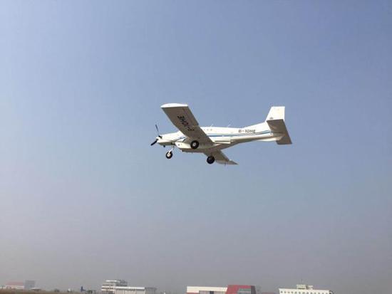 上午12:00,AT200飞机驱散重雾,一飞冲天。飞机经过滑跑、起飞、爬升至预定高度后,进入巡航段并盘旋两周,随后进入着陆航线平稳着陆,整个飞行过程持续26分钟,全程飞机状态稳定,航迹跟踪精确,达到设计要求。