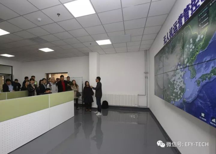 在考察沟通中,郭晶带领各位领导先后参观了企业荣誉展区、全国无人机云平台控制中心、前沿技术研发中心等区域。