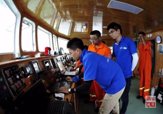 在调查队员乘坐的船上,驾驶台成了规划和监测无人艇“干活”的指挥室。只需将地质调查测线的指令发出去,无人艇就会在海面上“开跑”。在控制电脑的界面上,调查队员不仅能以无人艇的视角实时看到海面状况,还能随时操控它携带的各类调查仪器,仿佛人就在艇上。