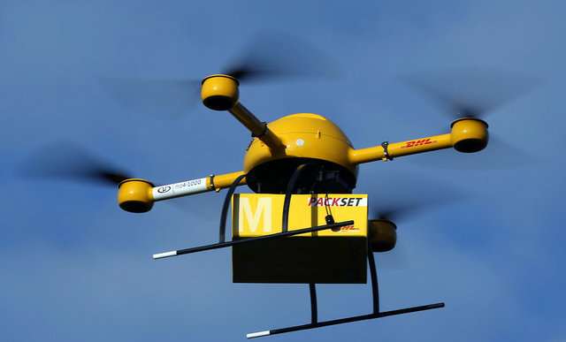 失业的威胁:无人机送包裹 当地时间2013年12月9日,德国DHL快递集团首次实现了无人机包裹运送,成功利用无人机Paketkopter将波恩药房的一个药品包裹从运送至一公里外的DHL总部。