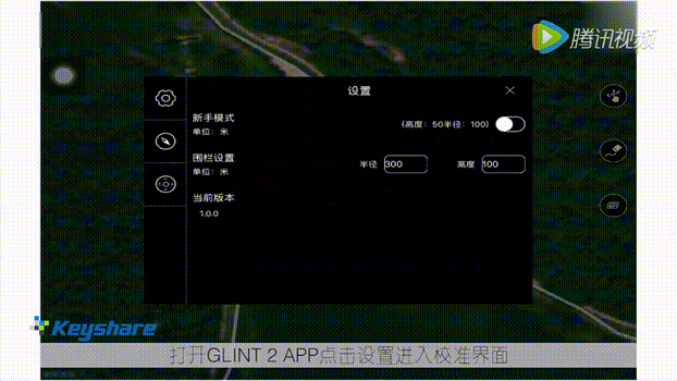 打开GLINT2 APP点击设置进入校准界面,再点击设置,进入设置界面,选择磁罗盘校准选项进行校准,或者我们可以将遥控器左边摇杆拉至最低。