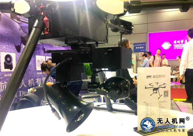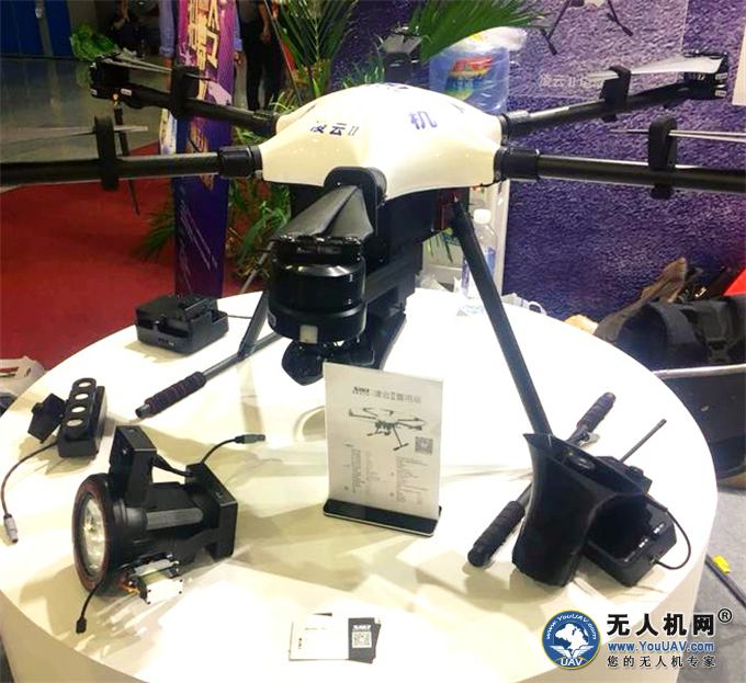 智航凌云Ⅱ多旋翼无人机同样智航的亮点产品,采用具备外观设计专利、符合空气动力学原理的流水型机身,配合1100mm轴距以及高效率锂聚电池,机臂采用可折叠式设计,在保证与机身连接刚度的同时,使整机运输体积最小化,方便运输携带。为了提高警用安防作业的效率,凌云Ⅱ可搭载公司生产的喊话器、高清变焦相机和抛投器三合一模块的载荷,使其在实际应用中更具有实用性。