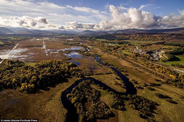 这一令人惊叹的照片展示了斯佩河汇入Loch Insh 的入口点。