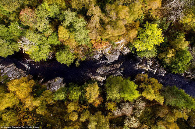 托密河穿过秋日的林冠,摄影师称他最喜欢的地区就是苏格兰西部地区。