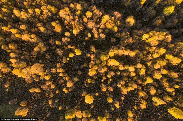 上图中是金尤西附近的桦树在秋天的树冠。