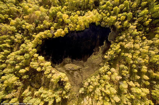 鸟瞰:克莱拉奇国家自然保护区,密林环绕的一个小湖。