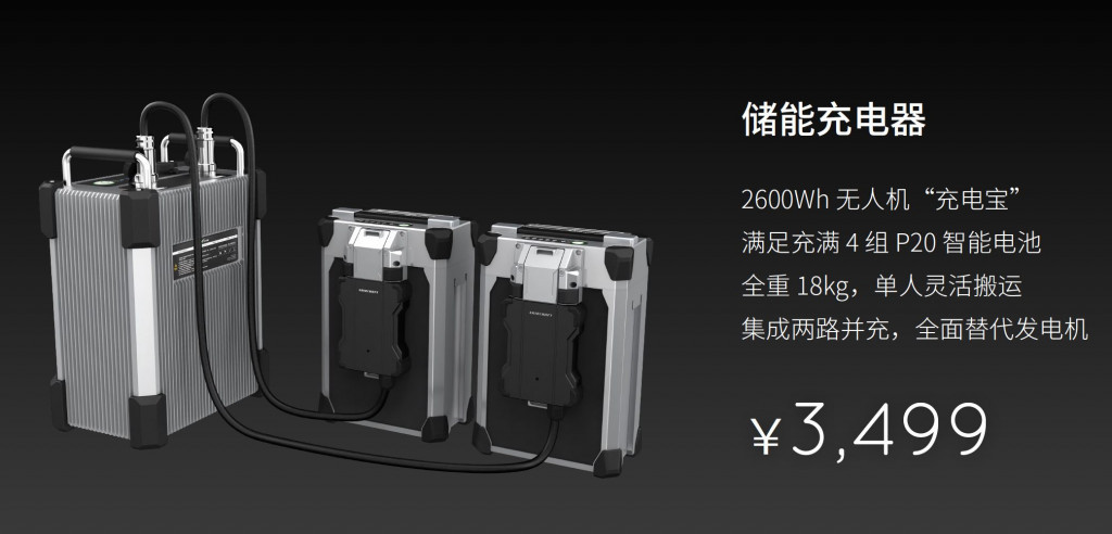 值得一提的是,在充电这个问题上,极飞研发了 XBMS 智能电池管理系统,官方称同样电量电池成本下降了 70%,降低大面积连续作业的充电成本。其中,性价比极高的「储能充电器」,内置两路并充,全面代替田间发电机;「保姆充电器」能同时看护 4 组电池连续充电;「聚能充电器」能合并电池剩余能量,延展电力来源。