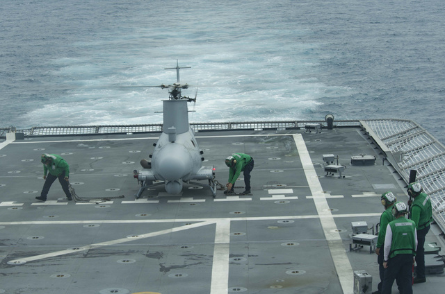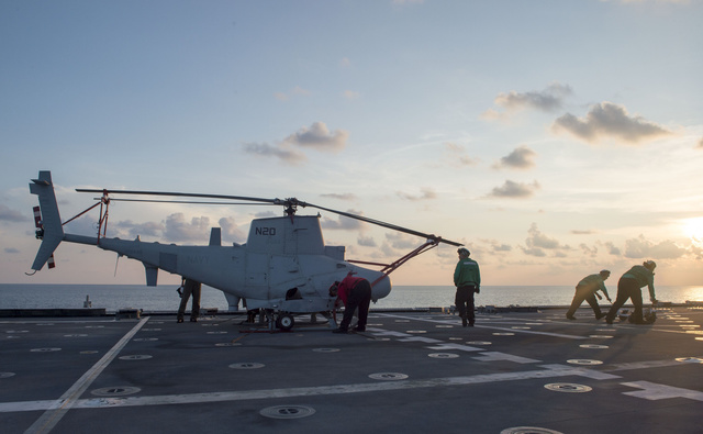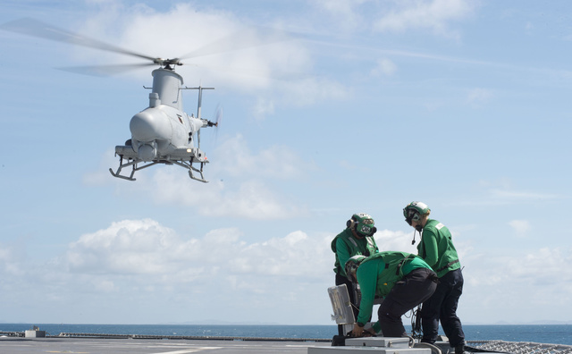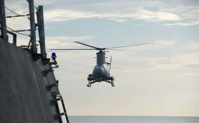 MQ-8火力侦察兵无人机是美国诺斯洛普·格鲁门公司研制的一种垂直起降无人机,现有海军型和陆军型两个型号。火力侦察兵提供侦察,态势感知,精确定位的支持。