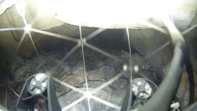 我附上几周前进行的一次探查的截图。照片显示我们进入了十分狭窄的空间,看起来 2-4 英尺高,但在视线之外的盲区差不多还有 40 英尺。如果没有保护罩,Elios 也无法进入那些没有保护罩的传统无人机无法进入的复杂地形进行探查。