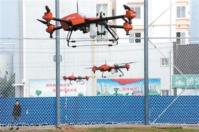 当天,多架无人机“嗡嗡”起飞,盘旋在16米高的安全防护网内喷洒“农药”,有多旋翼无人机、也有直升机,它们时而加快速度,时而空中悬停,赢得了现场观众的阵阵欢呼。