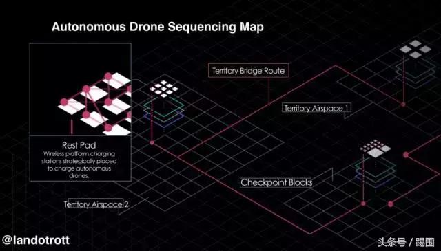 为了成功实现无人驾驶的无人机交付序列,团队需要在给定地域的空域内建立一个网格,程序用虚拟车道表示网格,并在沿途安装充电站以优化长途飞行。这可以通过在路线上设置检查点来完成,可以发送关于距离和目的地的信息更新,以便为在整个地域上部署的充电站提供更多的休息机会。