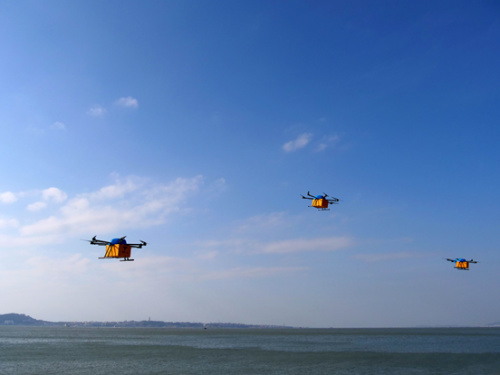 无人机群组跨海飞行送快递,此前在国内从未有过。这次跨海飞行任务由村淘、菜鸟联合国内优秀的技术团队共同承担。