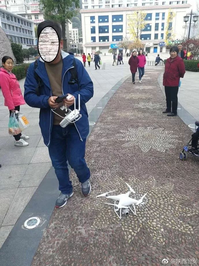 11月6日,汉中略阳治安大队在开展治安检查时发现中心广场有人操作无人机,经核查该人未取得无人机操作资质、未报批飞行计划,擅自操作无人机在人群密集拍摄,民警责令刘某收回无人机当场批评教育,告知其应依法依规操作无人机。