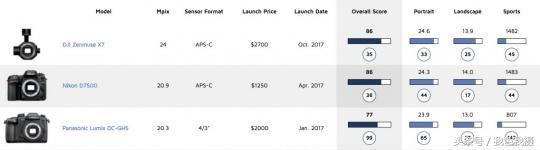 DJI Zenmuse X7的DxOMark传感器总体得分为86分,其传感器与尼康D7500等一些表现最佳的APS-C传感器相当。