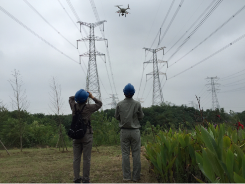 图为:国网湖北检修公司员工在东湖高新区500千伏光磁一回3号杆塔处开展无人机巡检。