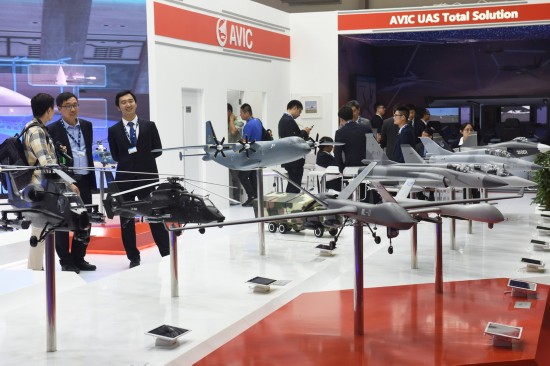 这是11月13日在阿联酋迪拜航展上拍摄的中国航空工业集团展区。
