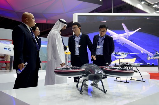 第15届迪拜国际航空展于12日至16日在阿联酋迪拜阿勒马克图姆机场举行。中国航空工业集团等中国企业携无人机、运输机、直升机、战斗机等产品参加展览。中国空军八一飞行表演队也首次受邀参加飞行表演。
