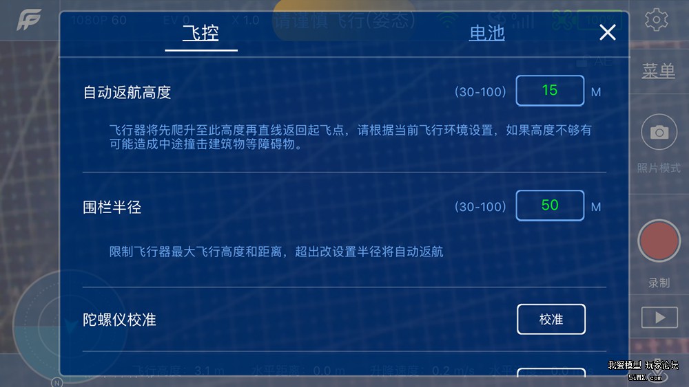 VR6的手机APP叫做“飞拍无人机”,在设计布局上这款比较传统,界面看起来有点小清新,在初始界面还有使用教学视频,功能也相对比较简单。除了最基本的设置和参数以外,没有那些复杂的功能和显示内容。而且在初始界面还有一个教学视频,让那些才接触无人机的玩家更容易上手。
