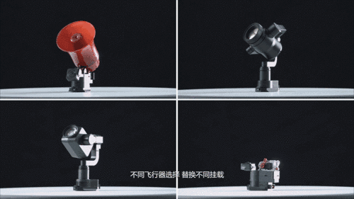 海康威视各类无人机挂载接口通用,支持俯仰、横滚和航向三个维度运动。海康威视飞行器可以搭载星光级云台、热成像云台、集成高清相机的喊话器、集成高清相机的抛投器以及200W高清云台。除上述挂载外,近期新推出的挂载也亮点颇多。
