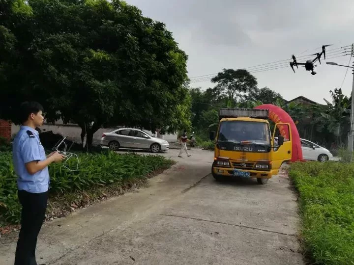 由于当地环境复杂,民警决定通过操控无人机进行空中侦查,实现空、地立体巡查。