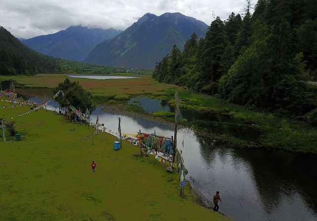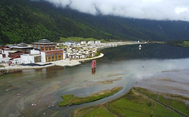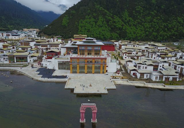 鲁朗小镇依湖而建,偎依在青山绿水当中。