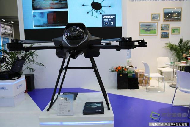 深圳科卫泰是一家国家级高新企业,当日展示的是其生产的多旋翼工业无人机,该无人机比传统无人机个头要大,整个翼展宽度超过2米。这款工业无人机最大的优点是能在高寒、大风等复杂空域进行长时间飞行,它自带飞行黑匣子,可提供多任务搭载,其动力采用油电混动模式,续航时间多达2.5个小时,是传统无人机的20多倍,能为海上作战部队以及边防部队提供飞行保障,曾在飞越深圳大风海域以及光明滑坡事件地质检测中有过很好表现。