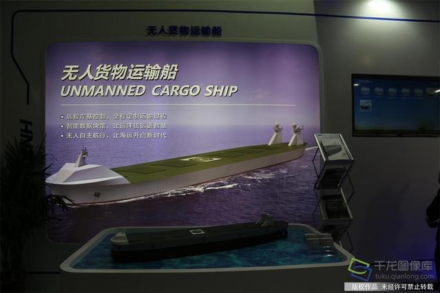 图为高交会上海航量子智能展示的无人货物运输船模型