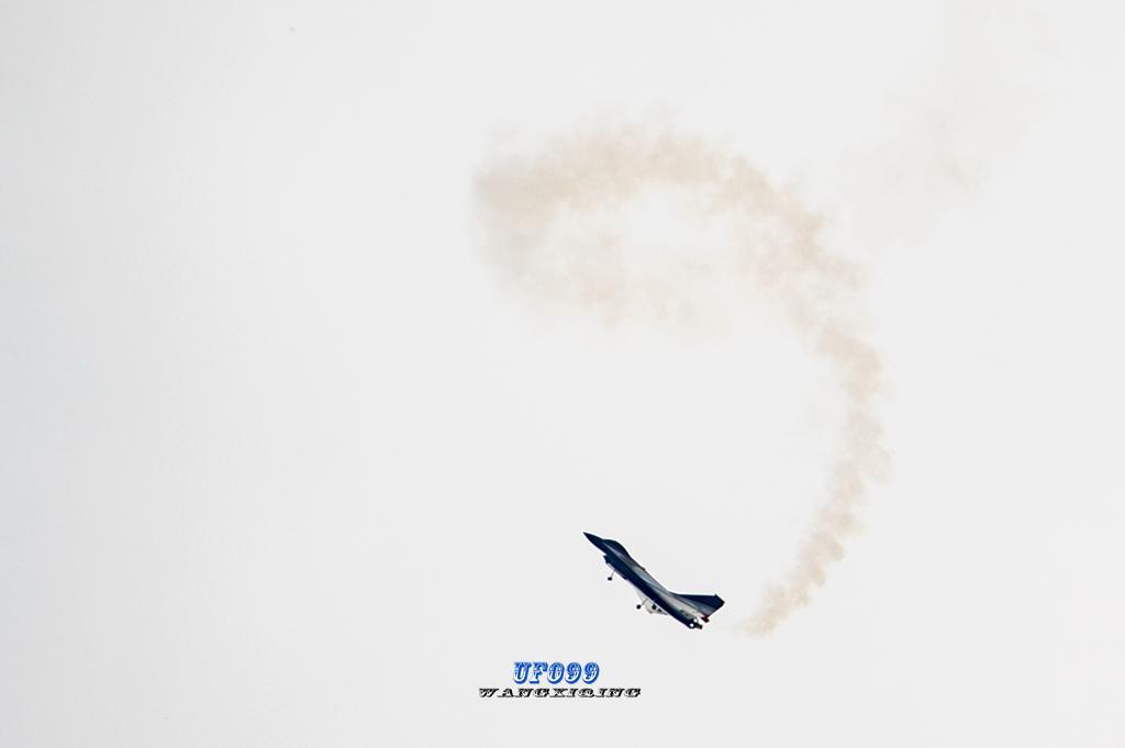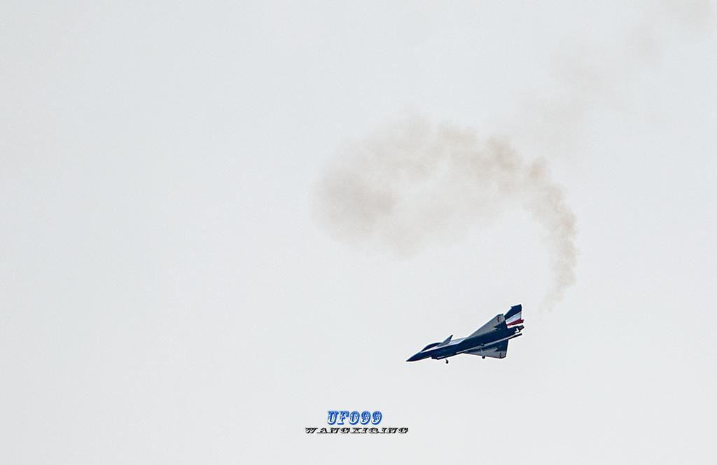 表演中充分体现了歼十战斗机优良的气动性能,无论是平飞还是仰飞都是一样的灵活。尤其是在进入螺旋状态下非常容易的就矫正回来,无论是拔高还是俯冲都是如此。飞快的飞行速度几乎无法让相机合焦。