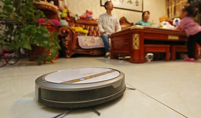 家住西郊的庞先生,平时和爱人上班比较忙,他就购买了一台既能扫地又能吸尘的机器人,他说:这个机器人平时扫地给自己省了很多事。