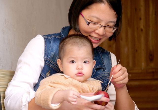 周丽霞说,买百香果的起因是想给女儿换换口味,加上家里人也喜欢吃,自己就一口气下了六箱。图为拿到百香果后,周丽霞第一时间拿出水果给女儿吃。