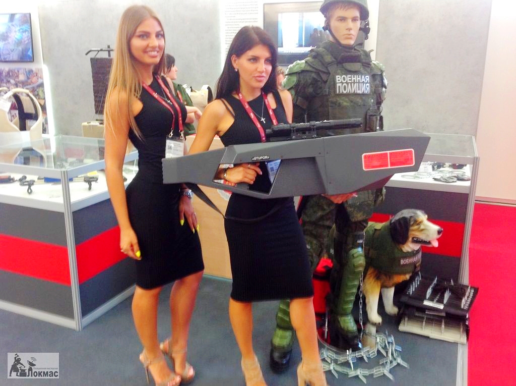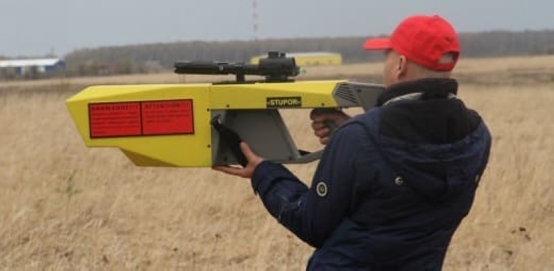 美女手上拿着的这把外形科幻爆表的武器,是俄罗斯国防部下属某中心研发的专门用来对付无人机的电磁干扰枪,它的名字叫“Stupor”。该枪为单人操作,可以在距离目标最远500米左右的范围进行工作。它覆盖的干扰频率为 GPS(L1,L2,L5), Wi-Fi 2.4 GHz和5.8 GHz。该枪除了能对付无人机外,还干扰直升机和蜂窝通讯。