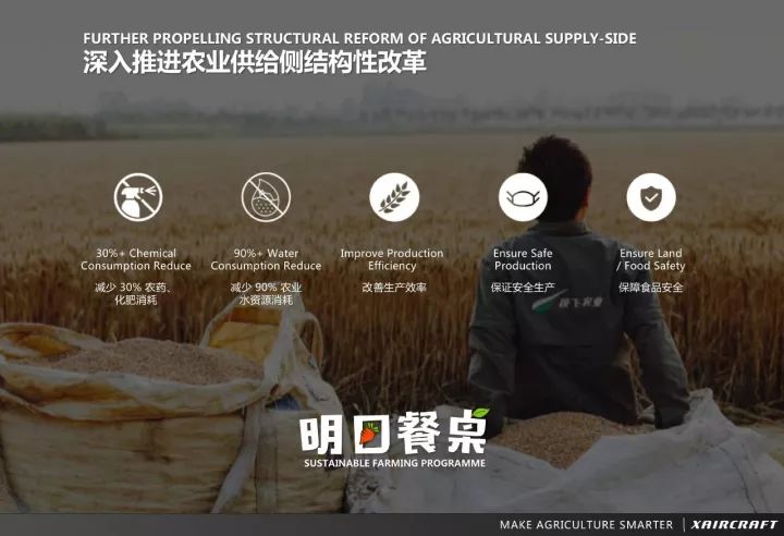通过利用多种智能无人化设备建立的体系,极飞可实现从根源上减量减施、节约用水,打造真正的「未来农场」,进行从田野到餐桌的全流程农业供给侧改革,从而保证人们「明日餐桌」上的粮食及食品安全。