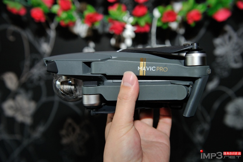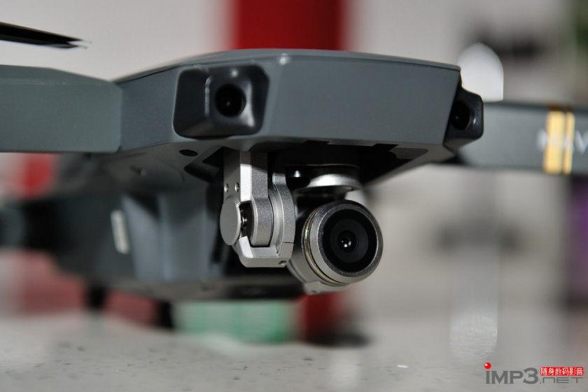 Mavic Pro的云台为三轴机械云台,开机状态下(电机没有启动时)我试着用手上下倾斜机身,发现这个云台会自动修正摄像头的角度,这对于高速飞行时拍摄视频的画面稳定性非常有帮助。从理论上来说,同款摄像头用机械云台的画质表现肯定比电子防抖要好,当然机械云台成本方面也更高一些。从这一点来说大疆还是很有诚意的。
