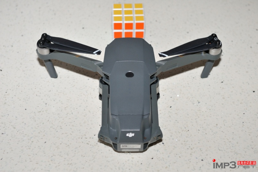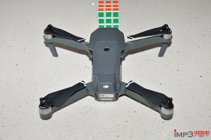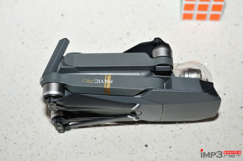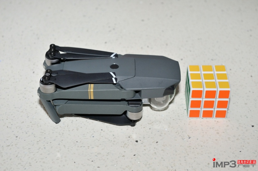 Mavic Pro的机身体积颠覆了我们对于无人机以往的认知,它折叠起来实在太小了,图片上对比的是一个标准尺寸三阶魔方,可以看出Mavic Pro比起大疆精灵系列无人机实在是小太多太多了。
