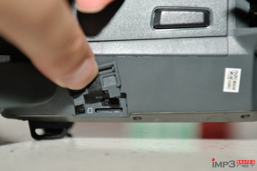 存储卡支持TF卡,我试了普速的东芝卡,使用上完全没问题,当然如果你拍4K的话,最好还是装个高速卡。上面还有个RC-WiFi拨钮,可以在遥控器和手机遥控操作两种模式间切换,在遥控器没电的情况下很有用,虽然手机遥控的距离只有500米,与遥控器的5公里以上完全不具备可比性,但想想如果只是应急升空拍段视频,500米也足够用了,没毛病。