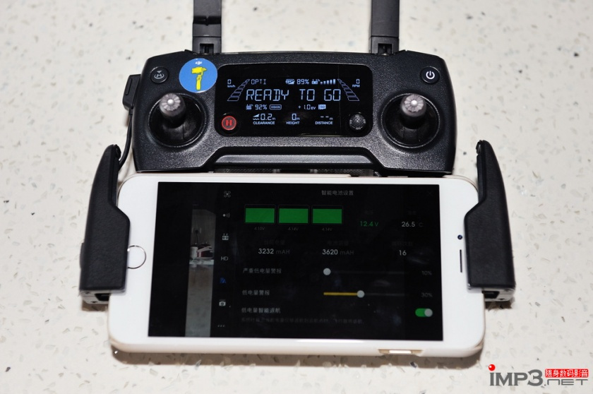 在不连接手机的情况下Mavic Pro也是能够起飞的,只不过没有实时图传,另外如果想对主机进行一些细节的设置,就必须通过手机APP才能完成。