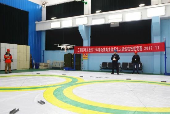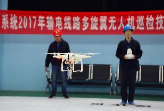 供电员工正在开展无人机室内“8”字飞行个人技能竞赛