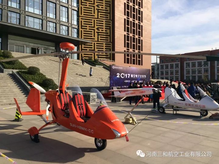 11月23日,郑州航院首届2017航空电子文化节在郑州航院图书馆西广场开幕,本届航空电子文化节在郑州国家通用航空产业综合示范区、航空经济发展河南省协同创新中心、河南省航空学会的支持下,由郑州航空工业管理学院、电子通信工程学院、机电工程学院、计算机学院、航空工程学院、民航学院、航空电子技术河南省工程研究中心、通用航空技术河南省工程研究中心、电子信息河南省实验教学示范中心、郑州市航空物联网重点实验室联合主办,本届航空电子文化节以新时代、中国梦、新科技、航空梦为主题,以丰富校园文化、搭建合作平台、展示办学内涵、提升学生认知为目的,本届航空电子文化节丰富航空电子文化,搭建校企合作平台,促进产教协同育人。作为郑州航院的产学研合作企业,让老师和同学们亲身体验了我公司的“太阳之鹰”自转旋翼机和“天眼”垂直起降复合翼无人机。