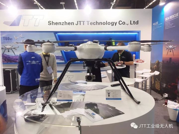 展会期间,JTT智璟科技展示的产品有T60c、T60 v2、T70以及多功能载荷等最新研发的产品,其中T60、T70系列军警无人机的功能特点与应用备受观众青睐,特别是其中一款T60V2军警无人机具备60分钟长航时、4.5公斤大载荷、多功能智能载荷、20公里远距高清图传的特点,其功能应用的强大在此次展会上吸引了众人的目光。