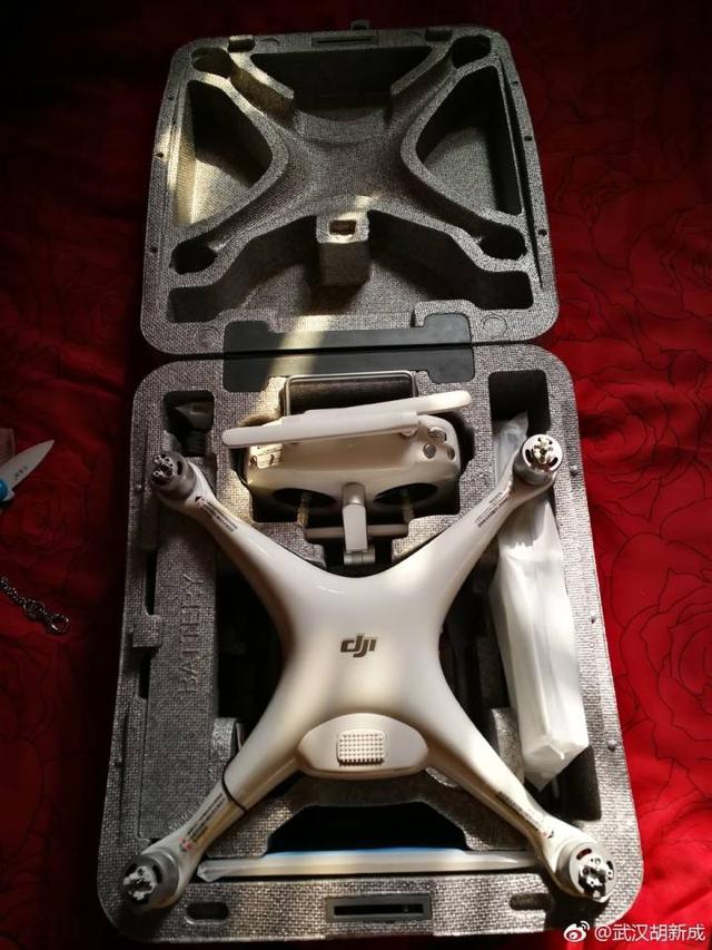 大疆淘宝官方旗舰店效率不错,11.13号下午下单,11.15号上午9点送到(南京市区),两个大纸箱,一个装电池一个装飞机。大疆精灵4Pro+高配版加换新计划是13997元人民币,因为是双11,优惠500,实价13497元)。拆开纸箱,里面是一个灰色的泡沫箱(比一般泡沫箱结实的多),扒开提手上方的锁扣,向下旋转90度,再轻轻抬起就可以打开箱子(此处摸索了五分钟)