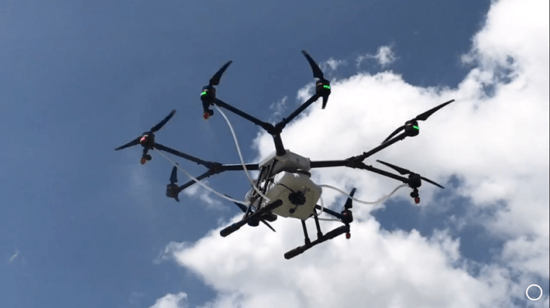 AGRODRONE 将航拍机改装成无人灌溉机。