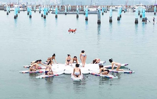 美女们在表演水上瑜伽,水手3强势抢镜,成为主角。