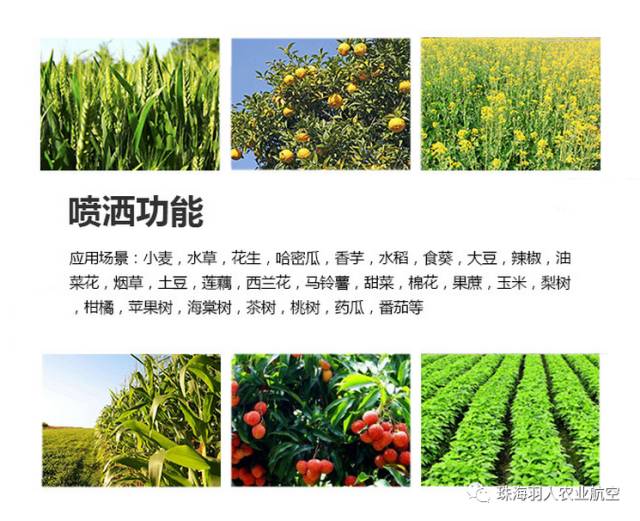 公司植保无人机产品主要有多旋翼植保无人机、农用无人机、喷药无人机、遥控多旋翼无人机,该类农用无人机广泛应用于农作物药剂喷洒、杂交水稻制种辅助授粉、农作物信息勘察、播种、施肥等农业领域。相继获得“辅助授粉”、“仿地飞行”和“防浪涌药箱技术”等80余项农用航空器专利技术,产品通过国家植保机械质量监督检验中心的检测,获省级农机补贴选型鉴定和证书,是多家省级政府采购的中标单位。自2015年起,农业部农机推广总站指定羽人在河南、江苏、广东、新疆、吉林等省进行试验示范。产品已经过区域大面积的作业验证,产品技术性能指标优异。